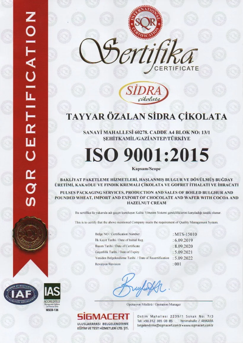 Our company's primary goals are to transfer all the possibilities of superior technology to production on the way to being dynamic, different and the best, to make fast and high-quality production under more hygienic conditions with new production lines added every year and to constantly develop new products. As all SIDRA Food personnel, we continue our work believing that our most important duty is customer satisfaction and we attribute the secret of our success to the continuity of the service we provide. We want to be in the future and for this reason, we continue our new product and market research without interruption.